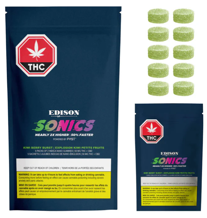 Sonics Kiwi Berry Burst 1:1 CBD:THC Multipack Nano Chews (5 x 2 Pack) - THC:CBD 5mg:5mg x 10