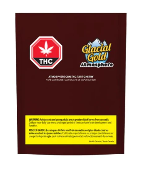 Glacial Gold Atmosphere CBN:THC Vapes deliver a distinctive experience with a carefully balanced blend of 25% CBN and 50% THC, designed for a smooth flavour. Each 1.2g cartridge contains 300mg CBN and 600mg THC, providing a harmonious synergy of cannabinoids. This vape is infused with a delightful tart-cherry botanical terpene profile creating a refreshing combination of sweet and sour cherry notes, making each inhale delicious.