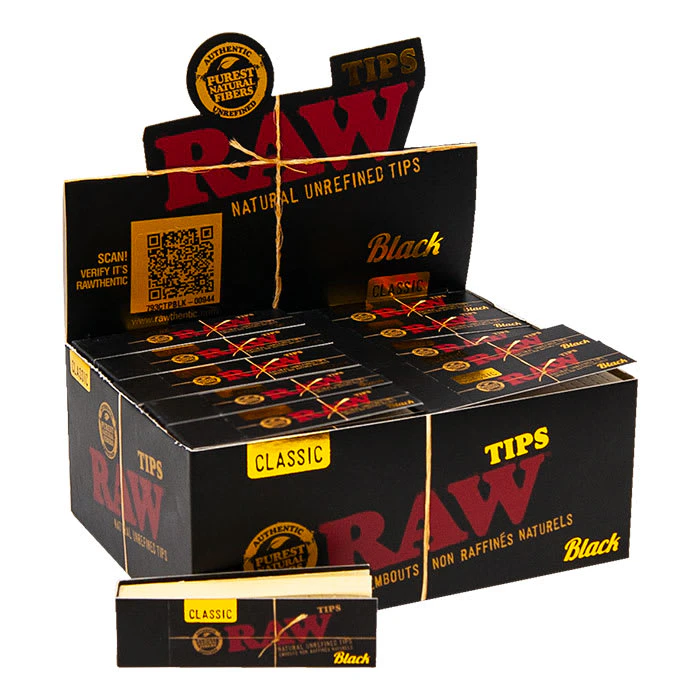 Raw Black unrefined natural tips Comes in display of 50 packs per display.
