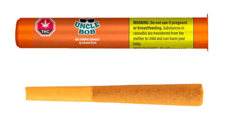 Uncle Bob's Big Orange Banger is a 1g infused blunt in the signature Uncle Bob orange, goji-berry wrap. This indica-dominant blunt uses only whole flower and is infused with THCA diamonds and orange cream flavoured botanical terpenes, delivering a perfect balance of sweet and tart flavours. Produced on Stó:l? traditional territory, Uncle Bob’s products are a tribute to quality and heritage, combining Indigenous values with top-notch craft cultivation methods. Available for a limited-time-only.